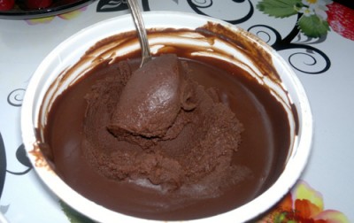 На чайную тарелочку наливаем столовую ложку шоколада.