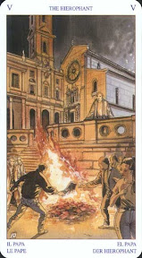 Вот Лена по этой карте ходила за бумагами, в гос. уч. Меня на работу вызвали.. что-то связано будет в такими местами. По жрецу - навязывание своей точки зрения, диктатура, угроза толпы или общественного мнения - лучше сделать шаг назад. Нетерпимость и манипуляция. По дну - вся в домашних делах, но налегке.