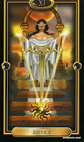 Глаза женщины завязаны золотой лентой. На фоне Луны перекрещены два меча. Внутри женщины происходит борьба между интеллектом и менее рациональными, интуитивными аспектами ее личности. Лицо женщины выглядит спокойным, словно эта борьба никак на нее не влияет. Возможно, она сознательно решила оставаться слепой в данной ситуации. В отличие от ВЕРХОВНОЙ ЖРИЦЫ нельзя сказать, что эта женщина элегантно балансирует между собственными интеллектом и интуицией. Она ничем не занята, она не делает никаких успехов. Борьба головы и сердца остается незавершенной. Вы стоите перед каким-то решением и не знаете, что вам делать. Вы должны принять решение. Снимите закрывающую глаза повязку и взгляните на ситуацию открыто. Наверняка Вы знаете, что делать, но просто боитесь. Остерегайтесь слишком долгого игнорирования ситуации. Если притворяться что чего-то нет, это не исчезнет.